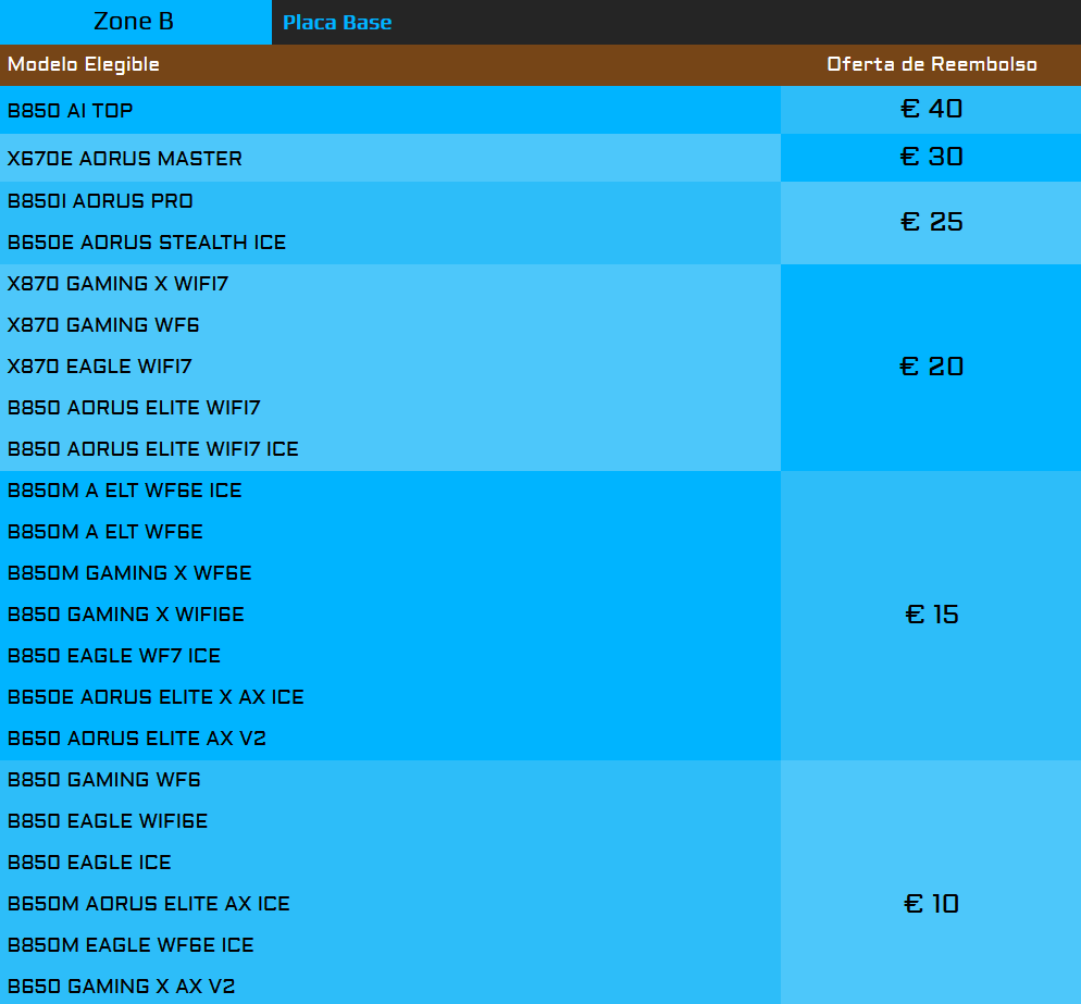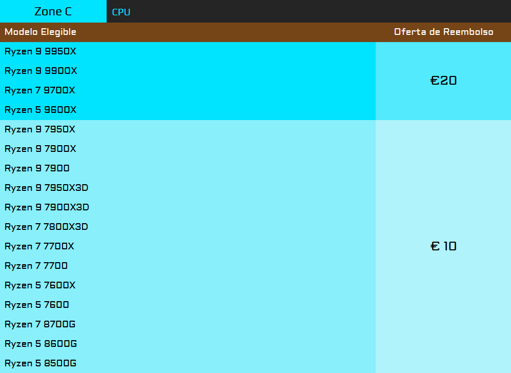 * Obtén 10€ / 20 € adicionales si adquieres una de las CPU de la lista junto con un producto de la zona A o B.