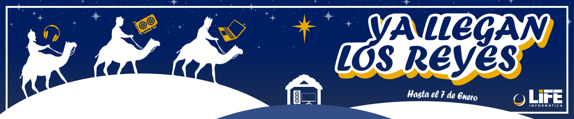 ¡Es momento de darnos esos caprichos que hemos esperado todo el año! Los Reyes Magos están a punto de repartir regalos, y en Life Informática, ¡nadie se quedará sin el suyo! Descubre los regalos de última tecnología y celebra el 7 de enero a lo grande. No te pierdas nuestras ofertas en portátiles, ordenadores de sobremesa, tarjetas gráficas, monitores, procesadores, periféricos y mucho más.