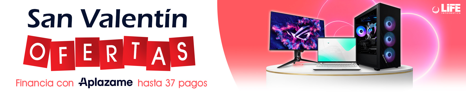 ¡Prepárate para celebrar el Día de San Valentín con Life Informàtica! Marca en tu calendario el 7 de febrero, la fecha en la que nuestras irresistibles ofertas y descuentos especiales para el día de los enamorados comenzarán. Sabemos que encontrar el regalo perfecto puede ser un desafío, especialmente después de las fiestas navideñas, pero ¡no te preocupes! Estamos aquí para facilitarte la tarea. Hemos creado listados especiales para que descubras el regalo ideal para tu ser querido. Y si eres tu propio amor, date un capricho que te lo mereces.