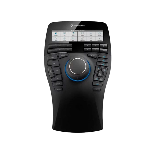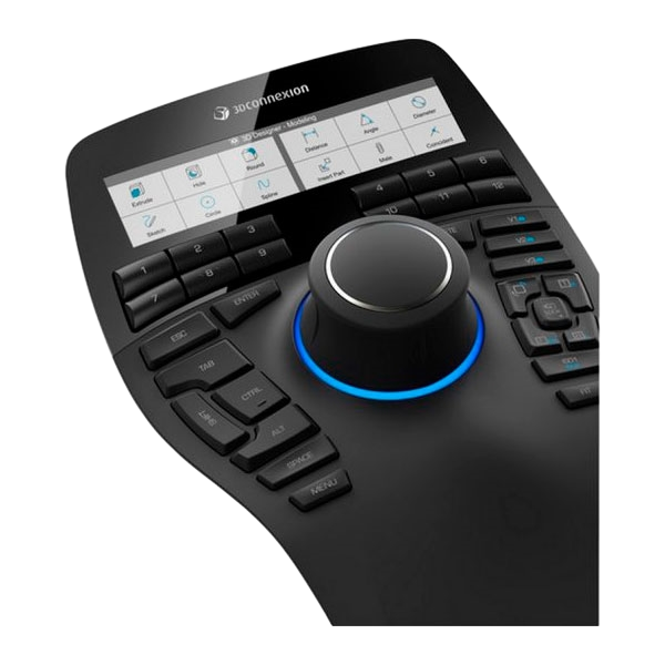 Y no hay que olvidar la visibilidad completa que ofrece la nueva pantalla de alta resolución de SpaceMouse Enterprise, que muestra los iconos actuales de la aplicación1; es decir, la barra de herramientas está al alcance de sus dedos. Nunca fue tan fácil personalizar la asignación de comandos a botones como lo es con la sencilla y eficaz interfaz de 3DxWare 10.