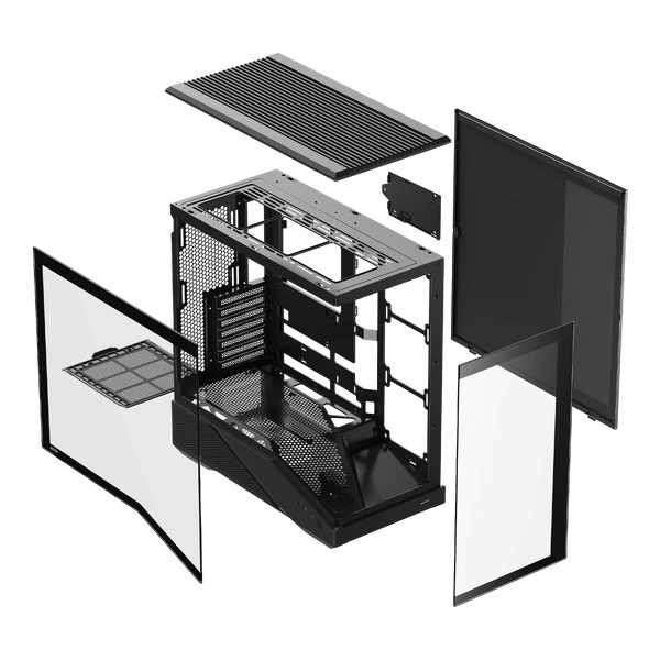 Compatible con placas base ATX, micro-ATX y mini-ITX, esta caja ofrece un amplio espacio para la instalación de componentes de alto rendimiento. Dispone de múltiples bahías para unidades de almacenamiento, permitiendo configuraciones flexibles según las necesidades del usuario.