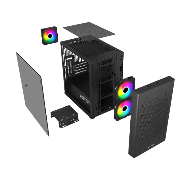 En términos de capacidad de enfriamiento, la caja está preparada para soportar diversas configuraciones. Incluye tres ventiladores ARGB, pero además incluye espacio extra para 2 ventiladores frontales de 120 o 140 mm, 2 ventiladores superiores de 120 o 140 mm, y un ventilador trasero de 120 mm, lo que garantiza una disipación de calor óptima para mantener tus componentes críticos en temperaturas seguras durante el uso intensivo. Además, cuenta con dos filtros anti-polvo que son fáciles de retirar y limpiar, asegurando un mantenimiento sencillo y eficaz. Además de su excelente sistema de refrigeración, la Danube Inva MX202 también se destaca por su diseño interior pensado para una gestión eficiente del cableado. Este diseño ayuda a mantener un aspecto ordenado y maximiza el flujo de aire dentro del chasis, mejorando así el rendimiento general del sistema. La Danube Inva MX202 de ABYSM Gaming es, sin duda, una excelente elección para quienes buscan una caja de tamaño reducido pero con la capacidad de albergar un sistema potente y fiable. Su diseño bien pensado y sus características avanzadas la convierten en una solución atractiva para cualquier configuración de PC que requiera eficiencia y estilo.