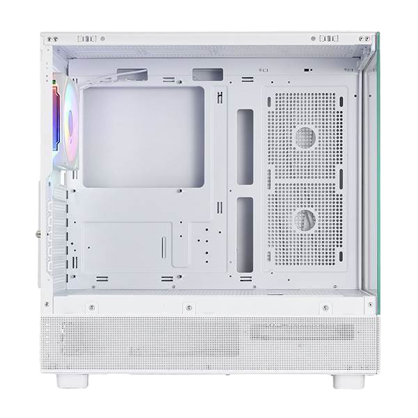 Uno de los puntos destacados de la caja es su amplio espacio interior, que permite acomodar tarjetas gráficas de hasta 41 cm de largo y enfriadores de CPU de hasta 18 cm de altura. Además, cuenta con múltiples opciones de almacenamiento, incluyendo soporte para dos discos duros de 3.5 pulgadas y una unidad SSD de 2.5 pulgadas, asegurando suficiente espacio para todas las necesidades de almacenamiento del usuario. La disposición interior también facilita una gestión de cables ordenada, mejorando la circulación del aire y la estética del sistema.