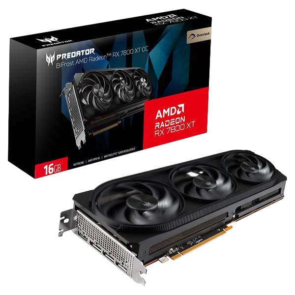 La tarjeta gráfica Acer Predator Radeon RX 7800 XT BiFrost OC ofrece un rendimiento destacado para juegos AAA, gracias a su frecuencia base de 2.2 GHz y una frecuencia potenciada de hasta 2.5 GHz en modo OC. Con 16 GB de memoria VRAM GDDR6 y una potencia total de 307W, esta tarjeta está diseñada para manejar altas cargas de procesamiento y ofrecer gráficos de alta calidad. Su soporte para DirectX 12 Ultimate y Ray Tracing garantiza una experiencia visual mejorada y detallada en juegos modernos, además de permitir la conexión PCIe 4.0 para un rendimiento eficiente.