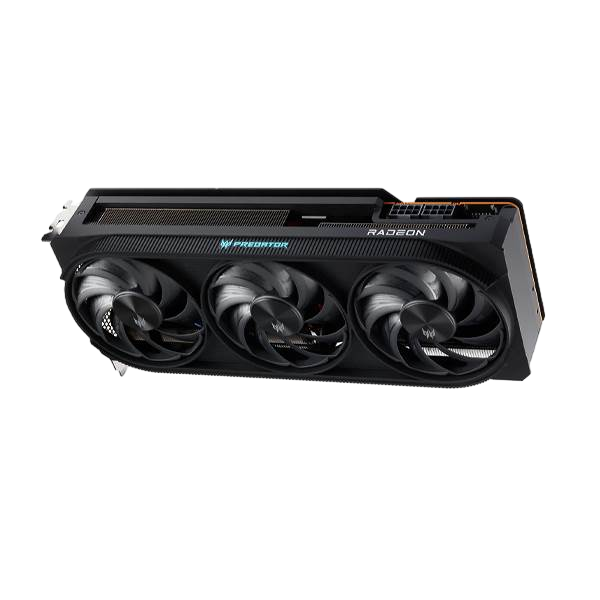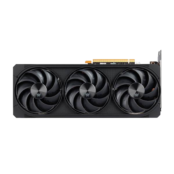 Esta tarjeta admite una resolución máxima de 7680 x 4320 y permite conectar hasta cuatro pantallas a través de sus puertos (1 x HDMI 2.1 y 3 x DisplayPort 2.1), lo que la convierte en una opción ideal para quienes buscan configuraciones de múltiples monitores y resoluciones altas. Su sistema de refrigeración está compuesto por tres ventiladores Predator FrostBlade 3.0, que incluyen un diseño de anillo y aspas con patrones ondulados para optimizar el flujo de aire y mantener bajas temperaturas, lo cual es clave durante sesiones intensas de uso.