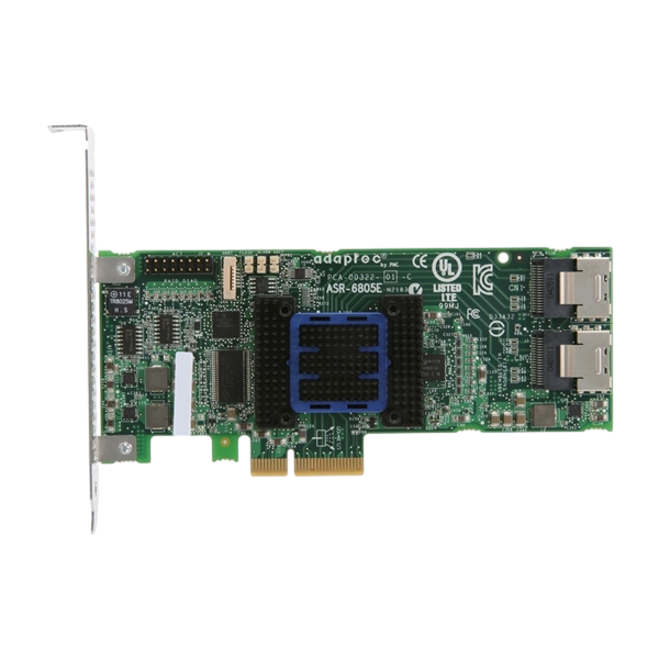 Con su precio de nivel de entrada, Adaptec 6805E se puede usar como un producto de conectividad, con soporte para hasta 8 dispositivos SATA y SAS, y 128 MB de caché DRAM DDR2-800 MHz para la aceleración del dispositivo. Al mismo tiempo, el Código RAID Adaptec (ARC) ofrece la máxima fiabilidad con niveles RAID 0, 1, 1E, 10 y JBOD. ARC también ofrece migración de nivel RAID (la capacidad de migrar fácilmente los niveles RAID), expansión de capacidad en línea (ampliar la capacidad sin apagar el servidor) y copia de seguridad de repuesto (cuando se reemplaza una unidad fallida, los datos se copian automáticamente desde el repuesto dinámico volver a la unidad restaurada).