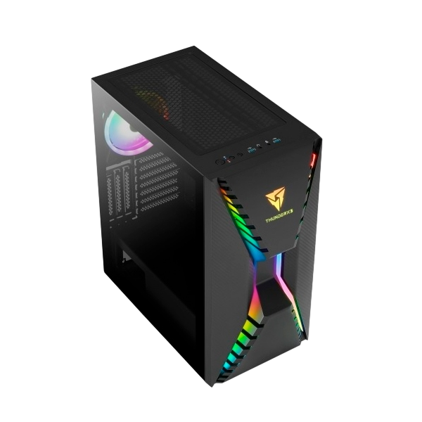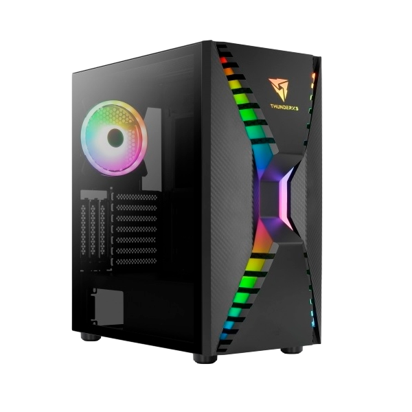 El diseño ancho y resistente del chasis admite placas base E-ATX para un rendimiento máximo y tres ranuras de expansión adicionales para la instalación vertical de la tarjeta gráfica. Diseñado por ThunderX3, esta torre de alto rendimiento cuenta con un diseño de panel frontal LED RGB en forma de X para agregar un estilo elegante a tu plataforma. Accede a 16,8 millones de colores a través de la placa madre Addressable RGB (Asus Aura Sync, MSI Mystic Light Sync, Gigabyte RGB Fusion). Toma el control del Addressable RGB de dos formas distintas: Botón de control LED o Placa base RGB direccionable.