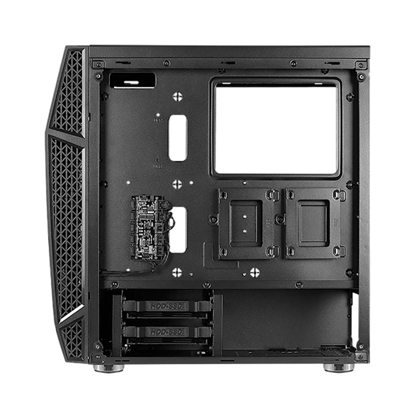 Viene equipado con dos ventiladores RGB direccionables de 12 cm en la parte superior y un ventilador RGB direccionable de 12 cm en la parte posterior de la caja.