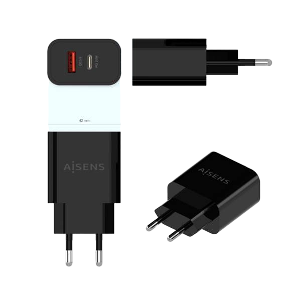 El Cargador USB Aisens A110-0682 es un cargador compacto y potente que ofrece 20W de carga rápida a través de sus puertos USB-C y USB-A, permitiendo una carga eficiente y segura para smartphones, tablets y otros dispositivos electrónicos. Su versatilidad lo convierte en la opción ideal para el hogar, la oficina o viajes.