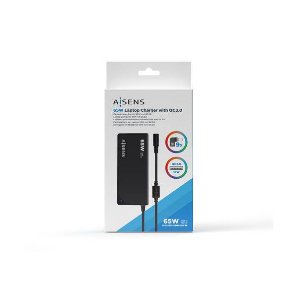 Aisens ASLC-65WAUTO-BK / 65W / 9 Conectores / USB 3.0 – Cargador de Portátil