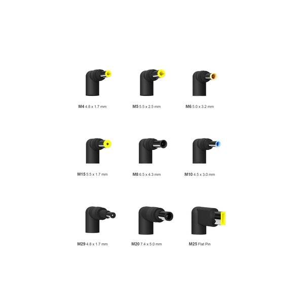 El Aisens ASLC-65WAUTO-BK es un cargador universal automatico de 65 W diseñado para ofrecer una carga eficiente y segura a una gran variedad de dispositivos. Incluye 9 conectores DC intercambiables, siendo asi compatible con diversas marcas de portatiles como LG, HP, ASUS Y Acer. Tambien cuenta con un puerto USB A QC 3.0, permitiendo carga rapida de dispositivos como smartpones, tablets y camaras digitales, aumentando asi su compatibilidad.