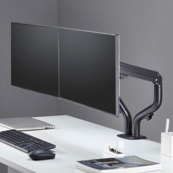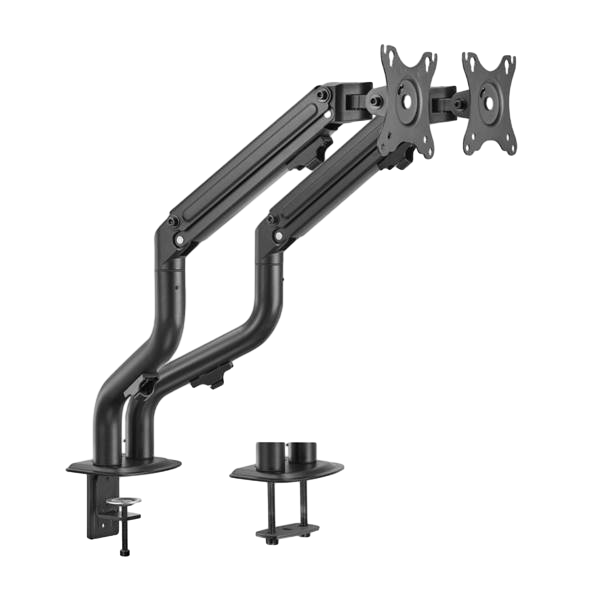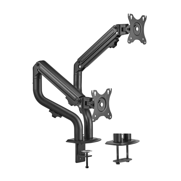 Con el Aisens DT32TSR-141 podrás sostener tus dos monitores cómodamente a tu mesa gracias a su abrazadera de tornillo pasante. Con sus dos brazos regulables podrás configurar tu montaje tanto en vertical como en horizontal. Su brazo articulado con muelle se ajusta de forma fácil y cómoda y con su 360º de giro, 180º de rotación y -45º/90º de inclinación tendrás total capacidad para organizar tu lugar de trabajo. Fabricado en acero de alta resistencia y pintado con pintura electrostática, el Aisens DT32TSR-141 tiene un acabado elegante para y duradero.
