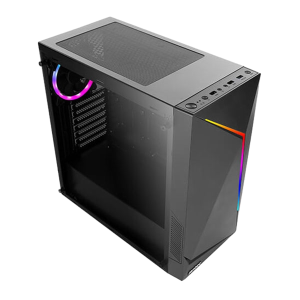 La caja Antec NX300 Black combina sin esfuerzo un conjunto de características muy demandadas: Conectividad USB 3.0, amplias bahías para unidades de almacenamiento, espacio para expansión, e incluye un ventilador LED ARGB en la parte trasera. Con soporte para un radiador de refrigeración líquida de hasta 240 mm en la parte delantera, la NX300 Black es fácil de montar y de refrigerar.