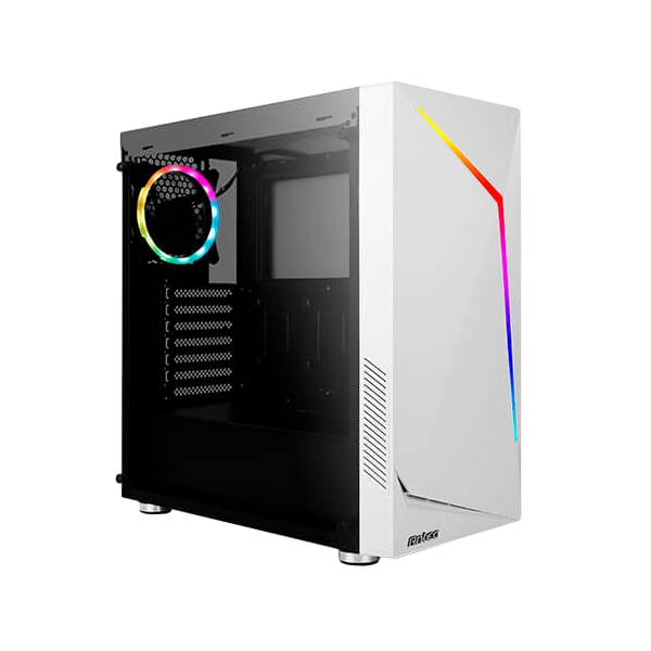 La carcasa para juegos NX300 White de media torre combina sin esfuerzo una gran cantidad de características en demanda: conectividad USB 3.0, amplias bahías para unidades de almacenamiento, espacio para expansión e incluye tres ventiladores regulares en la parte delantera y un ventilador LED ARGB en la parte trasera. Con soporte para un radiador de refrigeración líquida de hasta 240 mm en la parte delantera, NX300 White es fácil de construir y fácil de enfriar.