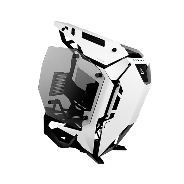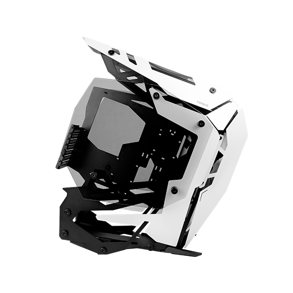 Torque Black / White, una torre central imponente con una posición de placa base inclinada hacia adelante, líneas agresivas y muchas características diseñadas para construcciones de alto rendimiento, fusiona paneles de aluminio cortados con precisión en color blanco y negro de alto contraste para brindar una experiencia mejorada a su escritorio.