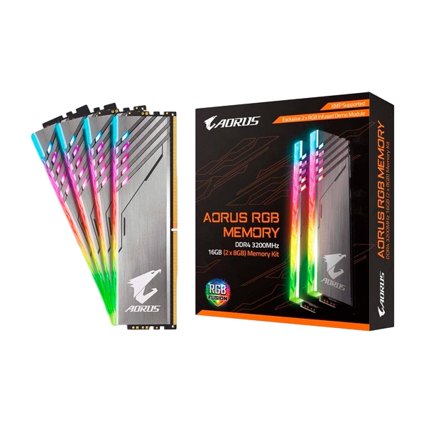 El nuevo kit de memoria AORUS RGB está diseñado para ser el mejor y ofrecer un rendimiento absoluto. El diseño elegante y lujoso y el acabado brillante lo hacen destacar frente a la competencia. Los LED RGB difusos combinados con los disipadores de calor de aluminio proporcionan una disipación de calor efectiva y un estilo impresionante al mismo tiempo. Si quiere un kit de memoria que lleve su PC al siguiente nivel, ¡el kit de memoria AORUS RGB es lo que hará que su sistema brille!
