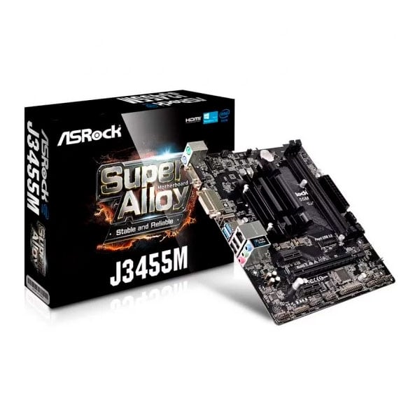Asrock J3455M. tipos de memoria compatibles: DDR3-SDRAM,DDR3L-SDRAM, Tipo de ranuras de memoria: DIMM, Velocidades de reloj de memoria soportadas: 1333,1600,1866 MHz. Fabricante de procesador: Intel, Socket de procesador: NA (CPU integrada), Modelo del procesador: J3455. Interfaces de disco de almacenamiento soportados: Serial ATA III. Conector USB: USB Type-A. Tipo de interfaz ethernet: Gigabit Ethernet, Controlador LAN: Realtek RTL8111E