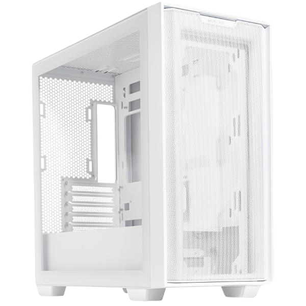 La caja Asus A21 en color blanco es ideal para quienes buscan una torre compacta y moderna para su equipo de juego o trabajo. Este modelo es compatible con placas base micro ATX y Mini-ITX, lo que ofrece flexibilidad para diversos tipos de configuraciones. Diseñada para mantener un flujo de aire óptimo, soporta hasta tres ventiladores frontales de 120 o 140 mm, un ventilador trasero de 120 mm, y tres ventiladores superiores de 120 o 140 mm, brindando un excelente sistema de enfriamiento para componentes de alto rendimiento.