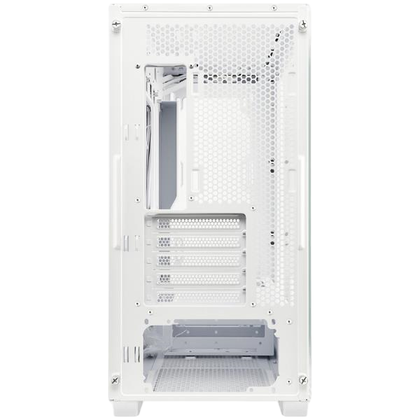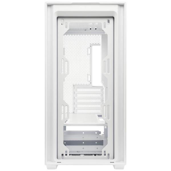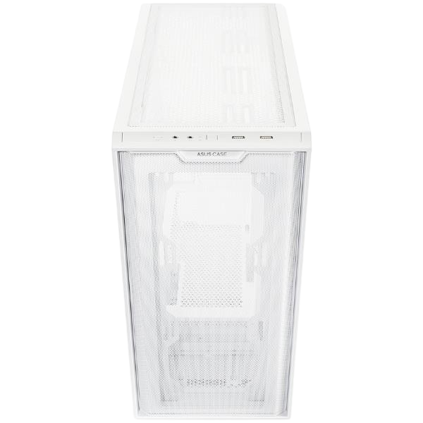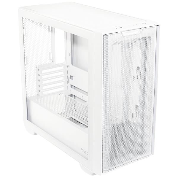 La Asus A21 incluye una ventana lateral que permite visualizar el interior del equipo, ideal para exhibir componentes de alto nivel. Para aquellos que requieren espacio adicional, cuenta con dos bahías de 3.5 pulgadas y una bahía de 2.5 pulgadas, además de cinco ranuras de expansión, permitiendo así una gran versatilidad para futuras actualizaciones. Además, dispone de una gestión de cables efectiva, manteniendo el interior de la caja organizado y facilitando el flujo de aire.