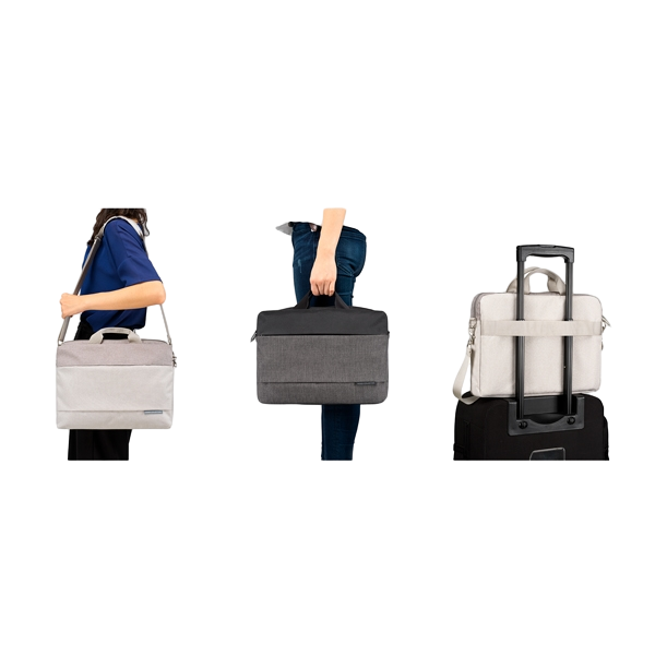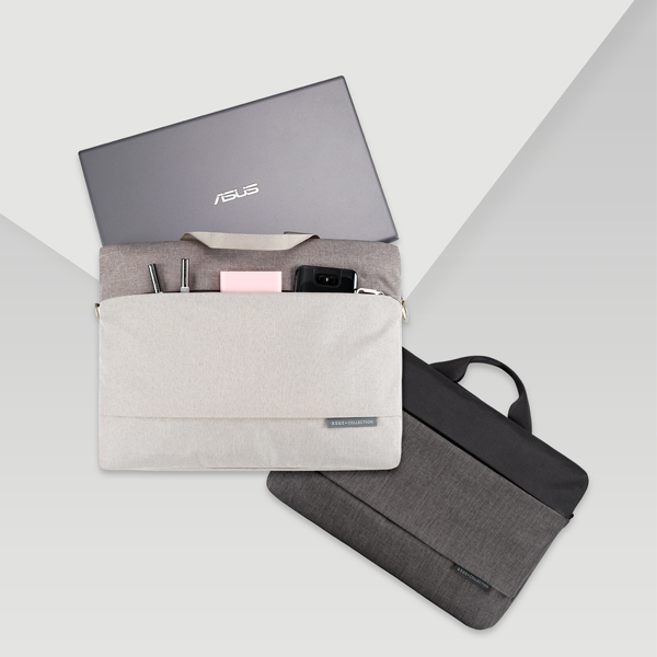 La bolsa de transporte ASUS EOS 2 brinda una sensación de estilo con su diseño de dos tonos, disponible en negro y gris oscuro, o avena y gris claro. Hecho de hilo y poliéster 600D resistente a los arañazos y al agua, está de moda y, sin embargo, es lo suficientemente resistente para el uso diario.
