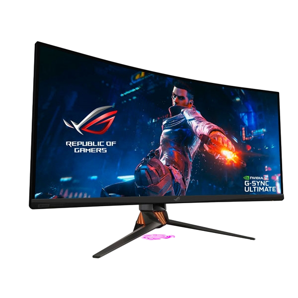 El ROG Swift PG35VQ es un monitor de gaming ultrapanorámico (35”) con resolución UWQHD (3840 x 1440), relación de aspecto de 21:9, una frecuencia de refresco que se puede acelerar hasta 200 Hercios y 4 milisegundos de tiempo de respuesta que brinda una experiencia visual increíblemente amplia y fluida. La tecnología Nvidia® G-SYNC™ Ultimate, el sistema de retroiluminación FALD con 512 zonas independientes, el brillo máximo de 1000 nits y la certificación DisplayHDR™ 1000 producen imágenes repletas de matices, con unos colores sombras y brillos que aumentan el realismo de los juegos.