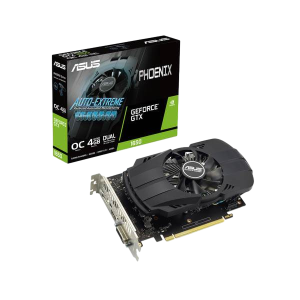 La ASUS Phoenix GeForce® GTX 1650 está construida con el potente rendimiento de gráficos de la galardonada arquitectura NVIDIA Turing™. Mejora tus juegos con GeForce GTX. . GDDR6 ultrarrápido con más de un 50 % más de ancho de banda de memoria para juegos de alta velocidad. . GeForce Experience te permite capturar y compartir videos, transmisiones en vivo con amigos, mantener actualizados los controladores de GeForce y optimizar fácilmente la configuración del juego. . Edición OC : reloj Boost 1635 MHz (modo OC)/ 1605 MHz (modo predeterminado). La resistencia al polvo IP5X ofrece protección contra el ingreso de partículas para una mayor durabilidad . Los rodamientos de doble bola en ventilador pueden durar hasta el doble que los diseños de rodamientos de manguito. . La tecnología Auto-Extreme utiliza la automatización para mejorar la confiabilidad. . El soporte de acero inoxidable es más duro y más resistente a la corrosión. . GPU Tweak III proporciona ajustes de rendimiento intuitivos, controles térmicos y monitoreo del sistema.. . Características:. . Buen punch. Las tarjetas gráficas Phoenix incluyen el mayor rendimiento posible en un diseño compacto que ofrece una amplia gama de compatibilidad con chasis pequeños. Ya sea que esté actualizando una tarjeta obsoleta o construyendo su primera plataforma de juegos, Phoenix es un paquete potente que ofrece un rendimiento de última generación.. . Cojinetes de doble bola para ventilador vida útil 2 veces más larga. Los diferentes tipos de rodamientos tienen ventajas y desventajas únicas. Los rodamientos de bolas destacan por su durabilidad y pueden durar hasta el doble que los diseños de rodamientos de manguito.. . Especificaciones:. . Graphic Engine: NVIDIA® GeForce GTX 1650. Bus Standard: PCI Express 3.0. OpenGL: OpenGL®4.6. Video Memory: 4GB GDDR6. Engine Clock: . OC mode: 1635 MHz (Boost Clock). Default mode: 1605 MHz (Boost Clock). CUDA Core: 896. Memory Speed: 12 Gbps. Memory Interface: 128-bit. Resolution: Digital Max Resolution 7680 x 4320. Interface:. Yes x 1 (Native DVI-D). Yes x 1 (Native HDMI 2.0b). Yes x 1 (Native DisplayPort 1.4a). HDCP Support Yes (2.2). Maximum Display Support: 3. NVlink/ Crossfire Support: No. Dimensions: 19.7 x 12.1 x 3.9 cm. Recommended PSU: 300W. Power Connectors: 1 x 6-pin. Slot: 2 Slot