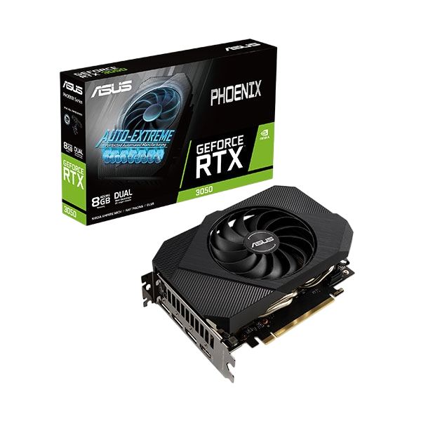 Asus Phoenix GeForce RTX3050 8GB GDDR6 – Tarjeta Gráfica Nvidia GeForce RTX 30 Serie. CUDA Cores 2560 Units, Core Clocks Boost: 1845Mhz, Memory Speed 14Gbps, Memory 8B GDDR6, Memory Bus 128-bit, Output DisplayPort x3 (v1.4a), PCI-E Gen4, HDMI x1 (Supports 4K@120Hz as specified in HDMI 2.1), HDCP, Digital Maximum Resolution 7680×4320, DirectX Version Support 12 API, OpenGL Version Support 4.6, Multi-GPU Technology, Maximum Displays, VR Ready, G-SYNC technology, Recommended PSU 550W, Power consumption 130W, Power connectors 8-pin x1, Dimensions 177mm X 128mm X 51mm.