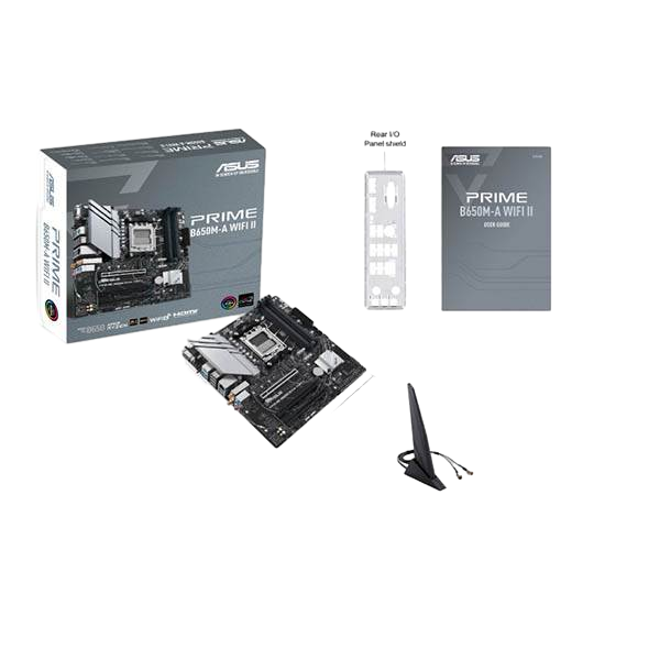 Asus Prime B650M-A II / WiFi AX / DDR5 / MicroATX – Placa Base AM5, Socket de procesador: Zócalo AM5, Procesador compatible: AMD Ryzen™ 7. tipos de memoria compatibles: DDR5-SDRAM, Memoria interna máxima: 128 GB, Tipo de ranuras de memoria: DIMM. Interfaces de disco de almacenamiento soportados: M.2, PCI Express 4.0, PCI Express 5.0, SATA, Tipos de unidades de almacenamiento admitidas: HDD & SSD, Niveles RAID: 0, 1, 10. Conector USB: USB tipo A. Tipo de interfaz ethernet: 2.5 Gigabit Ethernet, Estándar Wi-Fi: Wi-Fi 6 (802.11ax), Wi-Fi estándares: 802.11a, 802.11b, 802.11g, Wi-Fi 4 (802.11n), Wi-Fi 5 (802.11ac), Wi-Fi 6 (802.11ax)