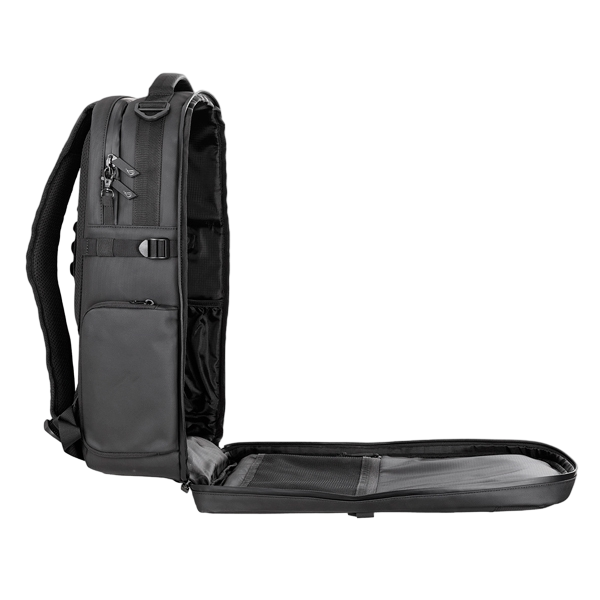- Prepara la mochila rápido y viaja seguro con la apertura estilo maleta, el clip con cremallera antirrobo y el bolsillo oculto en el respaldo.