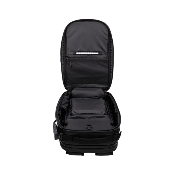 - Prepara la mochila rápido y viaja seguro con la apertura estilo maleta, el clip con cremallera antirrobo y el bolsillo oculto en el respaldo.