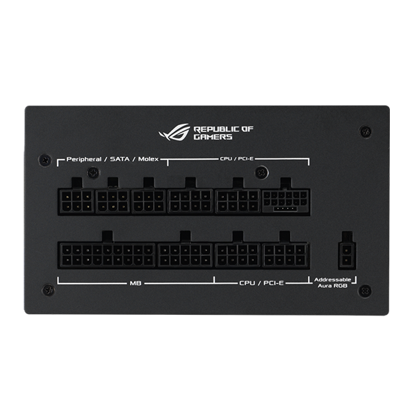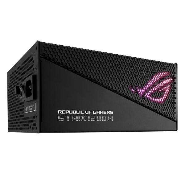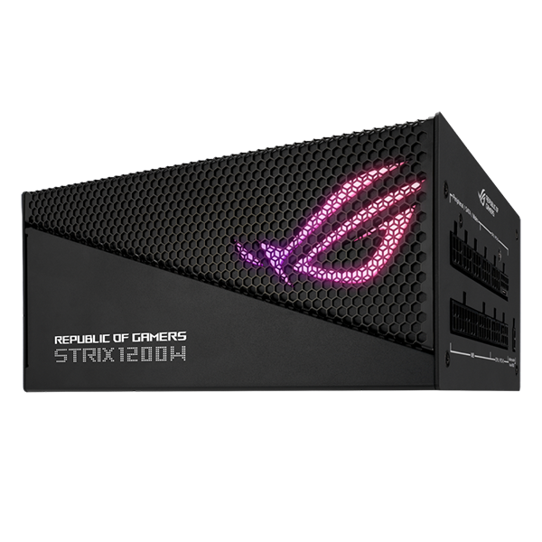 La fuente de alimentación ASUS ROG Strix 1200W Aura Edition cuenta con una potencia total de 1200W, en un chasis de aluminio resistente y elegante, que actúa además de disipador de la calor que produce el transformador de potencia en su interior, ayudando a reducir las temperaturas y ruido. Para ayudar más en la refrigeración, la fuente incorpora disipadores ROG que ayudan a mantener las temperaturas más bajas y a aumentar la vida útil de los componentes, también cuenta con un ventilador Axial-tech de 135mm, que con ayuda de sus aspas más largas, el anillo de barrera, y los rodamientos de doble bola, consigue mantener las temperaturas estables a baja velocidad con un nivel de ruido reducido, además de contar con la tecnología 0dB, que permite al ventilador a apagarse por completo cuando la carga de la fuente sea del 50% o inferior.