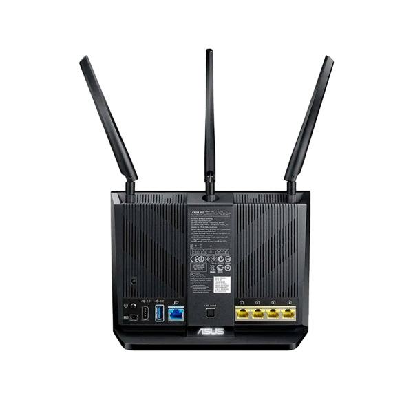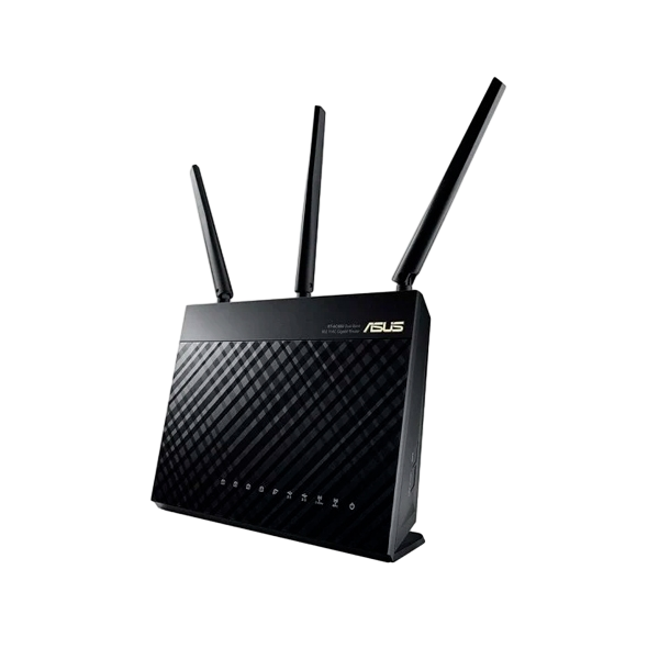 ASUS RT-AC68U. Tipo de conexión WAN: RJ-45. Banda Wi-Fi: Doble banda (2,4 GHz / 5 GHz), Est�ndar Wi-Fi: Wi-Fi 5 (802.11ac), Tasa de transferencia de datos WLAN: 1900 Mbit/s. Tipo de interfaz Ethernet LAN: Gigabit Ethernet, Est�ndares de red: IEEE 802.11a,IEEE 802.11ac,IEEE 802.11b,IEEE 802.11g,IEEE 802.11n, Ethernet LAN, velocidad de transferencia de datos: 10,100,1000 Mbit/s. Algoritmos de seguridad soportados: 64-bit WEP,128-bit WEP,WPA-Enterprise,WPA-PSK,WPA2-Enterprise,WPA2-PSK,WPS. Protocolos de gestión: UPnP, IGMP v1/v2/v3, DNS Proxy, DHCP, NTP Client, DDNS, Port Trigger, Universal Repeater, System.