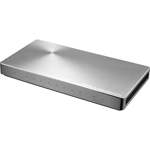 Switch Asus no gestionable de 10 puertos Gigabit Ethernet + 2 puertos 10 Gigabit Ethernet. Carcasa metálica diseño estilizado y fino.