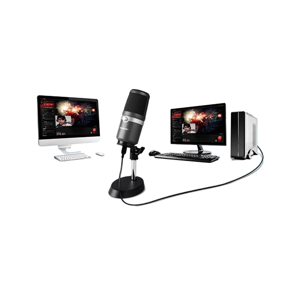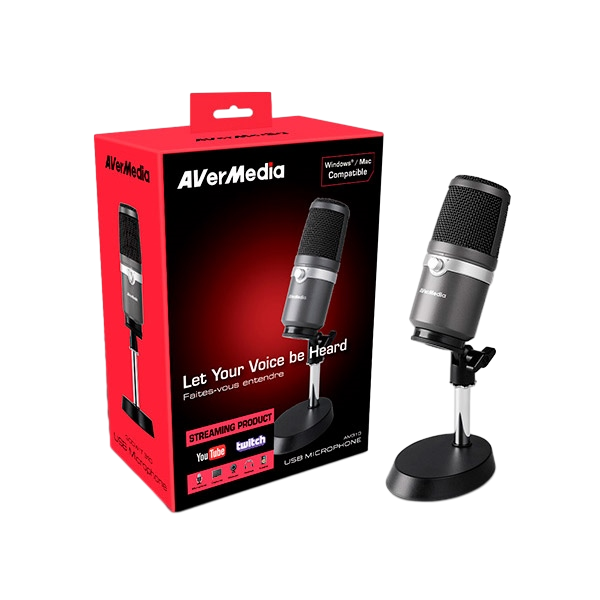 AVerMedia USB Microphone AM310 es un micrófono USB plug and play que permite grabar sonido de alta calidad para podcasting, streaming, gaming y mucho más. Sumérgete y haz disfrutar a tu audiencia de un sonido grabado mas claro, rico y de calidad. AVerMedia USB Microphone AM310 esta diseñado para música en directo y streamers que buscan un sonido de calidad. El condensador con el que cuentan registra las fuentes de sonido que están en la parte frontal del micrófono, proporcionando detalle, precisión y sonidos sin perder un sólo detalle. Libre de drivers este modelo es plug-and-play, su instalación es rápida y sencilla: simplemente conectar a un puerto USB de su PC o Mac y listo para grabar. AVerMedia USB Microphone AM310 cuenta con una toma de auriculares de 3,5 mm que le permite escuchar lo que se está grabando en tiempo real o mientras está jugando en su pc.