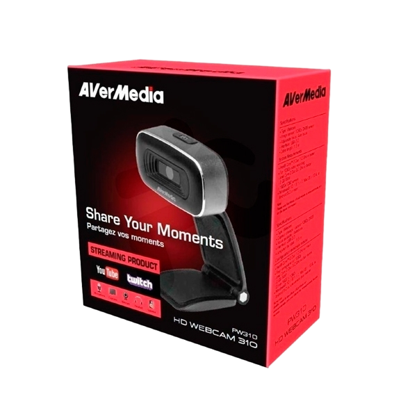 Comparta sus momentos con el mundo a través de HD Webcam 310, la cámara web USB plug and play que captura video Full HD 1080p para transmisión en vivo, juegos, chat y más.Grabaciones Full HD 1080pHD Webcam 310 graba videos vibrantes y nítidos en 1080p30 que capturan los detalles más finos para sus videos en vivo y blogs. También toma instantáneas de alta calidad de hasta 12 megapíxelesConecta y reproduceConveniencia en su mejor momento. todo lo que tiene que hacer es sacarlo de la caja, conéctelo a su PC o Mac y ¡listo! Compatible con videollamadas o cualquier software de transmisión, llegue a los que desee con facilidad.Enfoque automático suave y rápidoYa sea que desee apoyarse en un primer plano extremo o retroceder para una toma larga, la lente de HD Webcam 310 se ajusta automáticamente a cada movimiento de forma rápida y sin problemas para que su imagen permanezca enfocada.Clip flexible, listo para trípodeCon el diseño de clip universal, HD Webcam 310 se adapta literalmente a cualquier configuración. Puede adjuntarlo a la pantalla de su laptop, a su monitor de escritorio, apoyarlo sobre un escritorio o incluso sobre un trípode.Mejora de retrato en tiempo realAcompaña HD Webcam 310 con RECentral 4, el software de transmisión / edición de AVerMedia, y disfruta de la exclusiva función de Mejora de Retratos que te hace ver perfectamente en pantalla todo el tiempo. Con Microfono incorporado.
