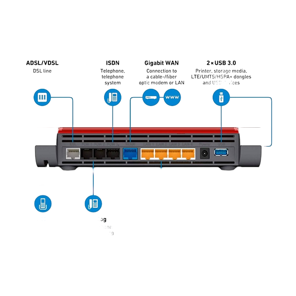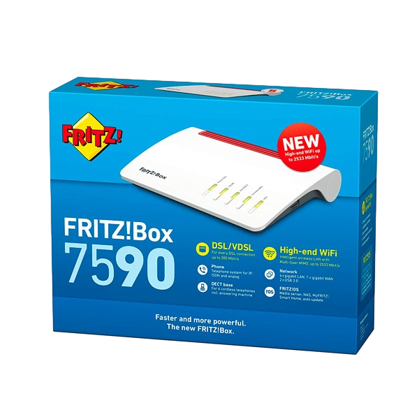 Con el uso de supervectoring, el 7590 es pionero en marcar las nuevas pautas, a través de las que pueda alcanzar hasta 300 Mbps de descarga. Con ello se triplica la velocidad en las conexiones DSL. La excelente conexión WiFi, LAN Gigabit y los puertos USB 3.0 de alto rendimiento hacen perfecta la red de alta velocidad. El equipamiento incluyen además una centralita completa con contestador automático y función de fax.