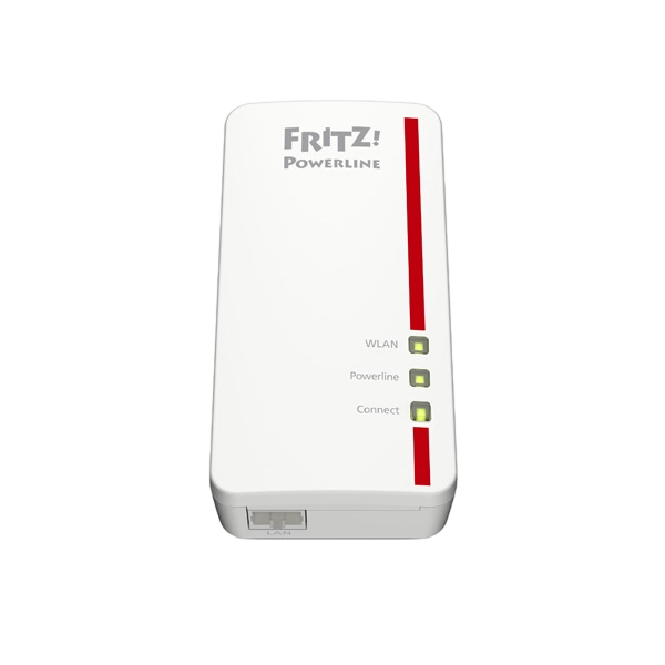El FRITZ!Powerline 1260E alcanza velocidades de otra categoría; el PLC permite distribuir datos a una velocidad de hasta 1.200 Mbps. Además puede utilizar la red inalámbrica tanto en la frecuencia de 2,4 GHz, donde alcanza hasta 400 Mbps, como en la de 5 GHz, donde alcanza hasta 866 Mbps. De este modo, tanto el ordenador como el televisor reciben una línea de datos vertiginosa a través de la red eléctrica, y los terminales y smartphones pueden navegar a la máxima velocidad en la red WiFi.