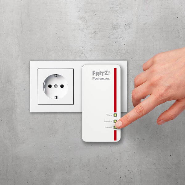 Los usuarios con menos experiencia son los que más agradecen una configuración que se caracteriza, sobre todo, por su sencillez. Enchufe los dispositivos con cifrado de seguridad en la toma de corriente y active los adaptadores FRITZ!Powerline con tan solo presionar un botón. Puede ampliar una red PLC existente con la misma rapidez o completarla con WiFi.