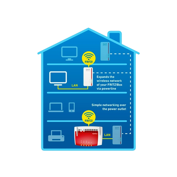 Amplíe el alcance inalámbrico a través de la red eléctrica, llegue hasta la caseta del jardín y disfrute de un WiFi veloz incluso en las zonas más alejadas. Además, el potente puerto LAN Gigabit se encarga de que el ordenador, la Smart TV, la videoconsola y los demás dispositivos circulen de forma óptima por la autovía de datos.