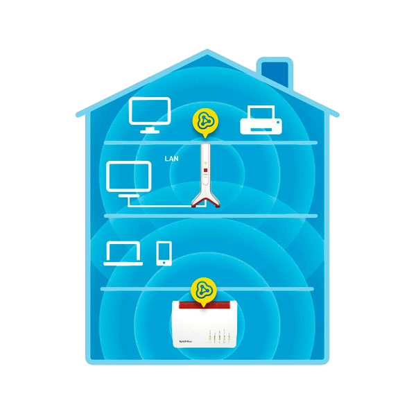 Con FRITZ! podrá ampliar su red inalámbrica tanto como necesite con tan solo presionar un botón. Combine su FRITZ!Box con cualquier modelo de repetidor FRITZ!WLAN y un PLC de la gama FRITZ!Powerline con WiFi. Con ello, su red doméstica podrá adaptarse a sus necesidades individuales y usted podrá disfrutar de toda la comodidad del WiFi Mesh con FRITZ!.