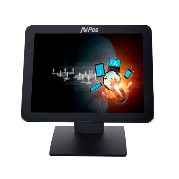 Monitor táctil AVPos 17" T17 LED, interfaz de conexión VGA multitáctil, en color negro.