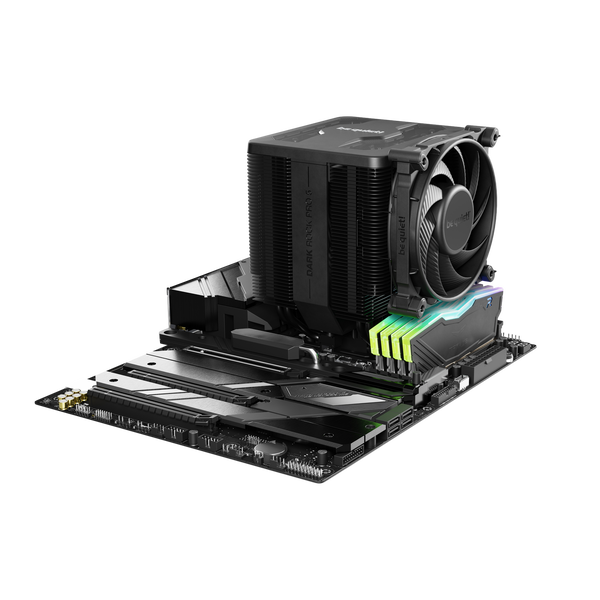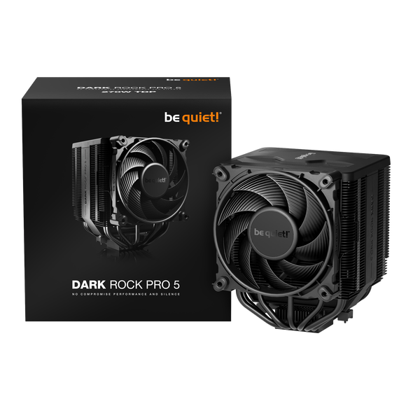 El Dark Rock Pro 5 cuenta con tecnología de refrigeración de aire con ventiladores silenciosos de 120 mm y 135 mm, que funcionan de manera eficiente para reducir la temperatura sin generar ruido excesivo. Además, su conexión por cable con PWM asegura un control preciso de la velocidad del ventilador, adaptándose automáticamente según las necesidades térmicas del sistema. El diseño modular permite la instalación de hasta 7 tuberías de calor de cobre para una mayor transferencia térmica.