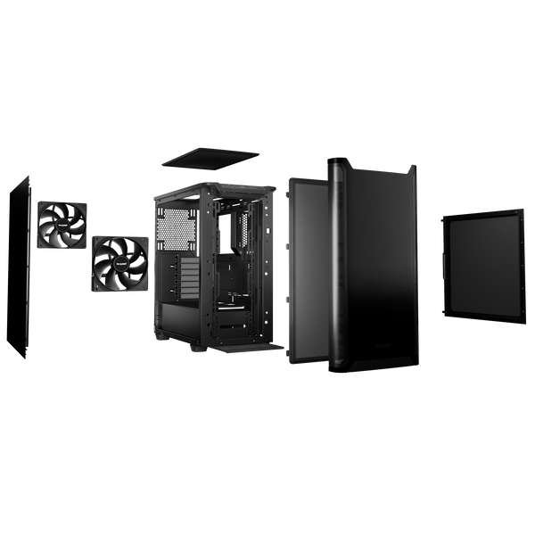 La be quiet! Pure Base 501 Black es una caja ATX compacta y versátil que combina diseño clásico con funcionalidad moderna. El panel frontal elegante y la cubierta superior de flujo de aire aseguran un diseño limpio y ordenado, ideal para quienes buscan una caja que mantenga su escritorio estético y facilite la circulación de aire para la refrigeración de los componentes. Incluye dos ventiladores Pure Wings 3 de 140 mm PWM preinstalados, que proporcionan un flujo de aire adecuado y silencioso para uso diario y sesiones de gaming moderadas. Este diseño reduce las turbulencias y mantiene el ruido a niveles bajos, aunque para configuraciones extremas de hardware puede ser necesario añadir ventiladores adicionales.
