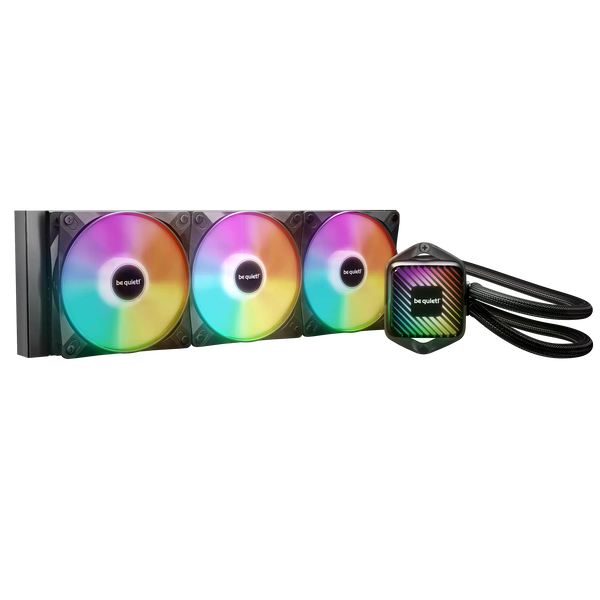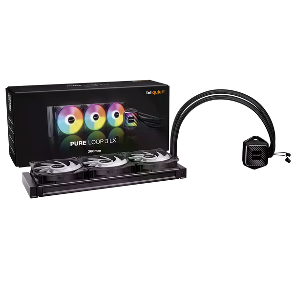 El Be Quiet! Pure Loop 3 LX 360mm ARGB eleva la refrigeración líquida a un nivel superior, combinando un diseño visual impactante con un rendimiento térmico excepcional. El bloque de refrigeración ARGB incorpora 10 láminas de iluminación para efectos de luz intensos y personalización completa, ofreciendo un aspecto espectacular en cualquier montaje de alta gama. Este sistema incluye 3 ventiladores Light Wings LX 120mm PWM de alta velocidad, con salida de aire en forma de embudo, que garantizan un flujo de aire óptimo y silencioso. La bomba PWM de 6 polos reduce vibraciones al mínimo y mantiene un enfriamiento constante, asegurando temperaturas estables incluso bajo cargas extremas, con niveles de ruido desde 17,3 dB(A) al 50% de velocidad.