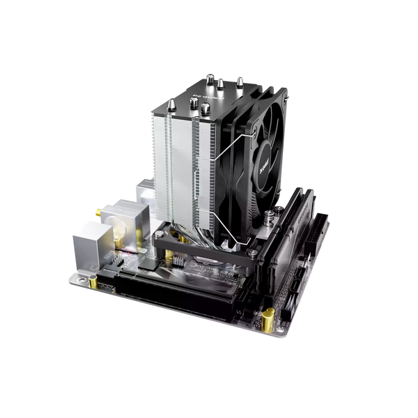 Be Quiet! Pure Rock Slim 3 es un disipador de CPU compacto y silencioso diseñado para brindar un rendimiento eficiente incluso en sistemas Mini-ITX o PCs multimedia donde el espacio y el ruido son una preocupación. El montaje es intuitivo y robusto, permitiendo una instalación rápida sin complicaciones y con compatibilidad para sockets Intel 1851 / 1700 y AMD AM4 / AM5. El Pure Rock Slim 3 cuenta con un ventilador PWM de 100 mm desarrollado por be quiet!, que garantiza un funcionamiento extremadamente silencioso, con niveles de ruido de solo 12.4 dB(A) al 50%, 18.5 dB(A) al 75% y 24.8 dB(A) al 100% de velocidad. El diseño bicolor, con cubierta superior negra y heatpipes niquelados, combina estética con eficiencia térmica.