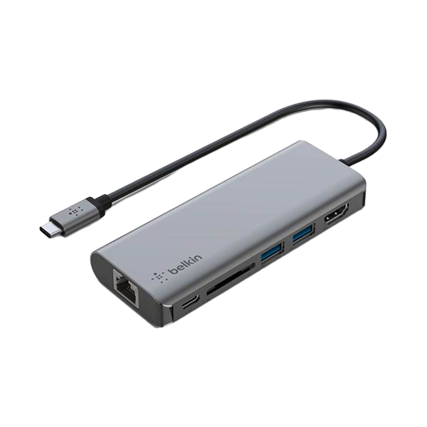 Belkin AVC008BTSGY Multipuerto USB-C A Ethernet USB-C USB-A HDMI SD Color Gris – Adaptador USB