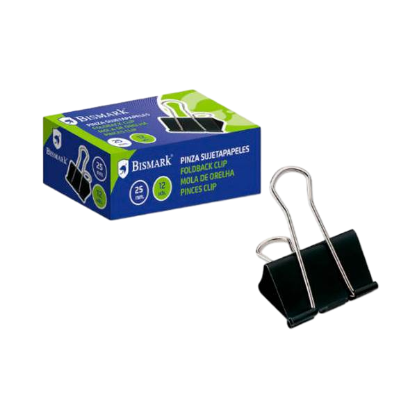 Bismark Pinza Metálica Palanca Abatible sujetapapeles 25 mm Color negro | Caja 12 unidades