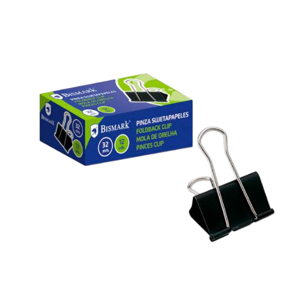 Bismark Pinza Metálica Palanca Abatible sujetapapeles 32 mm Color negro | Caja 12 unidades