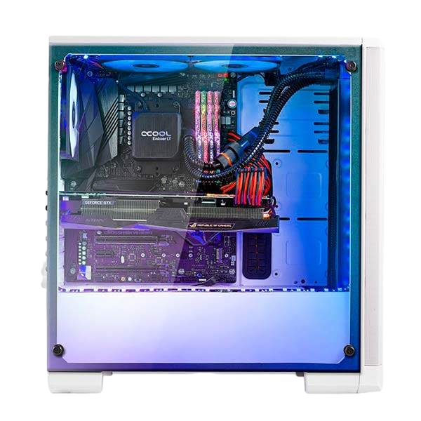 Especificaciones:. . Material: Steel, Mesh, Plastic. Motherboard Support: Mini-ITX, MicroATX, ATX, E-ATX up to 272mm. Maximum Air Cooler Height: 160mm. Maximum Graphics Card Support (Length): 340mm . Expansion Slots (PCI-E): 7 Slots. Front I/O Ports: 2 x USB 3.0, Audio I/O. 2.5'' Drive Bay: 3+2. 3.5'' Drive Bay: 2. Fan Support(Front): 2 x 140mm or 3 x 120mm. Fan Support(Top): 2 x 120mm. Fan Support(Rear): 1x 120mm. Included Fans(Front): 3x 120mm A-RGB Fans. Included Fans(Rear): 1 x 120mm A-RGB Fan. Radiator Support(Front): 240mm x 1/ 280mm x 1/ 360mm x 1(Thickness up to 35mm/ width up to 141mm). Radiator Support(Top): 240mm x 1 (Thickness up to 27mm/ width up to 125mm). Radiator Support(Rear): 1 x 120mm. Power Supply: ATX & Standard / up to 160mm. Dimensions: (W x H x D)206mm x 460mm x 437mm.