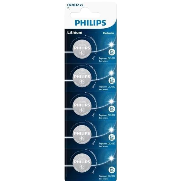 Blister Philips 5 pilas botón CR2032P5/01B Lithium 3V – Pilas